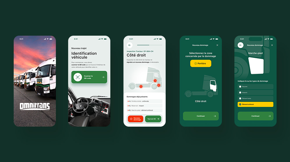 Transport Gagne souhaitait une solution numérique qui facilite l’état des lieux avant et après chaque mission de ses véhicules. La fonction principale de l’application mobile développée par OpenStudio était donc de faciliter la remontée d’informations terrain (dommages, anomalies constatées par les conducteurs) pour une meilleure traçabilité des incidents. Grâce à cette optimisation de la gestion de sa flotte, l’objectif final de Transport Gagne est évidemment d’anticiper les réparations et de prolonger la durée de vie de ses véhicules.
